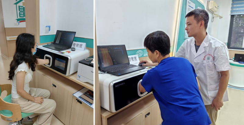 (In accordance with the requirements of the "Osteoporosis Screening Management Specifications" group standard issued by the Shanghai Quality Association in July 2025, Mednova Medical was invited to participate in free home health management and osteoporosis screening and other chronic disease clinics for middle-aged and elderly people organized by institutions such as Shanghai Fengxian Community Health Center and Shanghai Qingpu Community Health Center.)