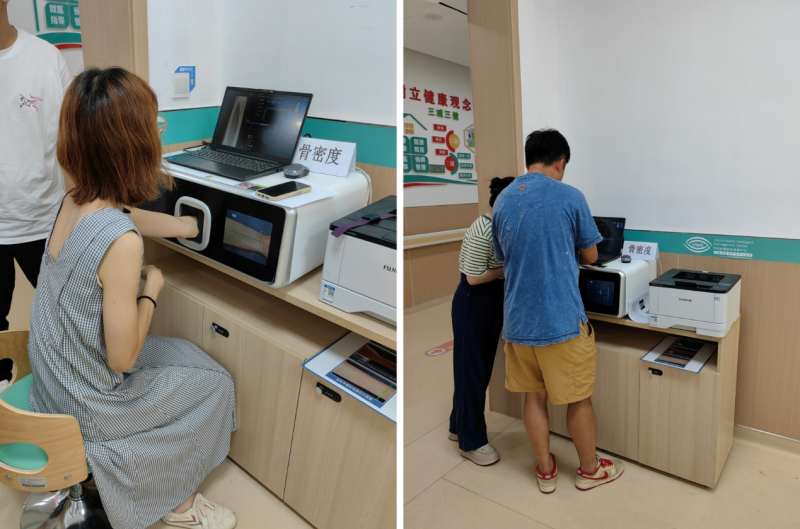 This event provides free bone density testing for community residents. Ms. Wang, who had been feeling weak and experiencing back pain recently, initially thought it was menopause, but discovered it was osteoporosis. "Today, I had a dual-energy X-ray absorptiometry scan, and the results came back in a second. The specialist gave me the report, and I realized I had osteoporosis." Upon learning that the community hospital has a specialized osteoporosis clinic, Ms.Wang decided to make time to see a specialist for a thorough consultation.